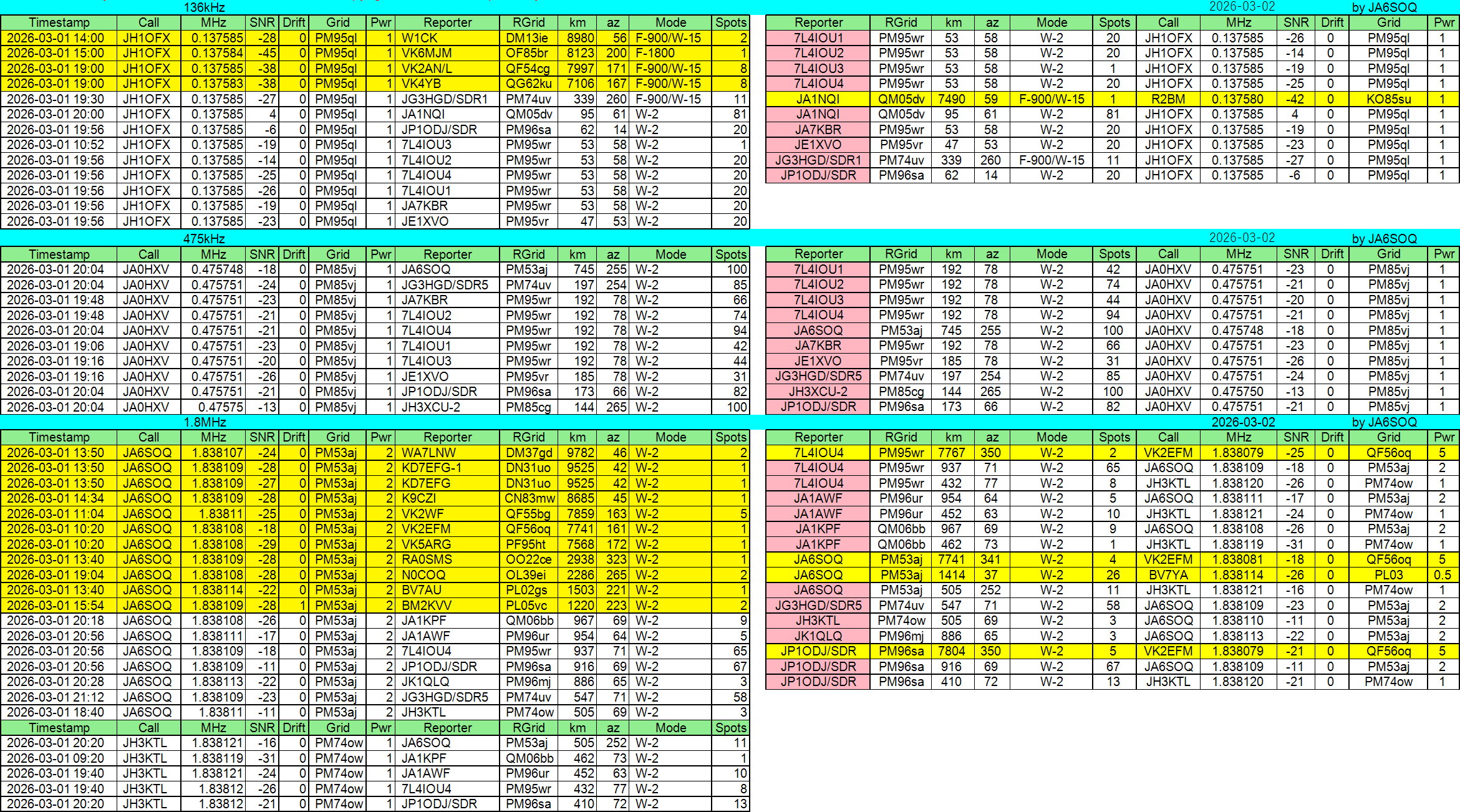 2026年03月02日JST//WSPR他集計です。