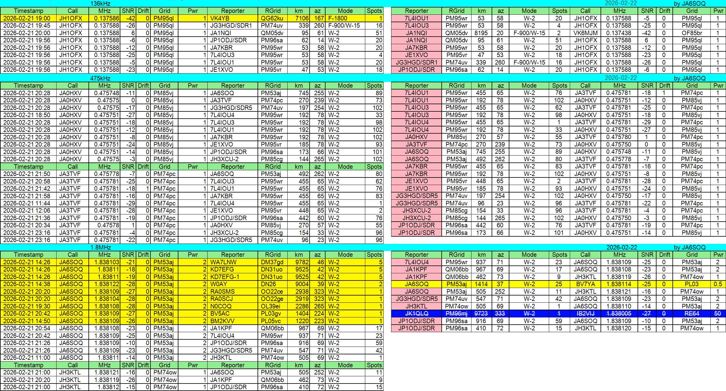 2026年02月22日JST//WSPR他集計です。