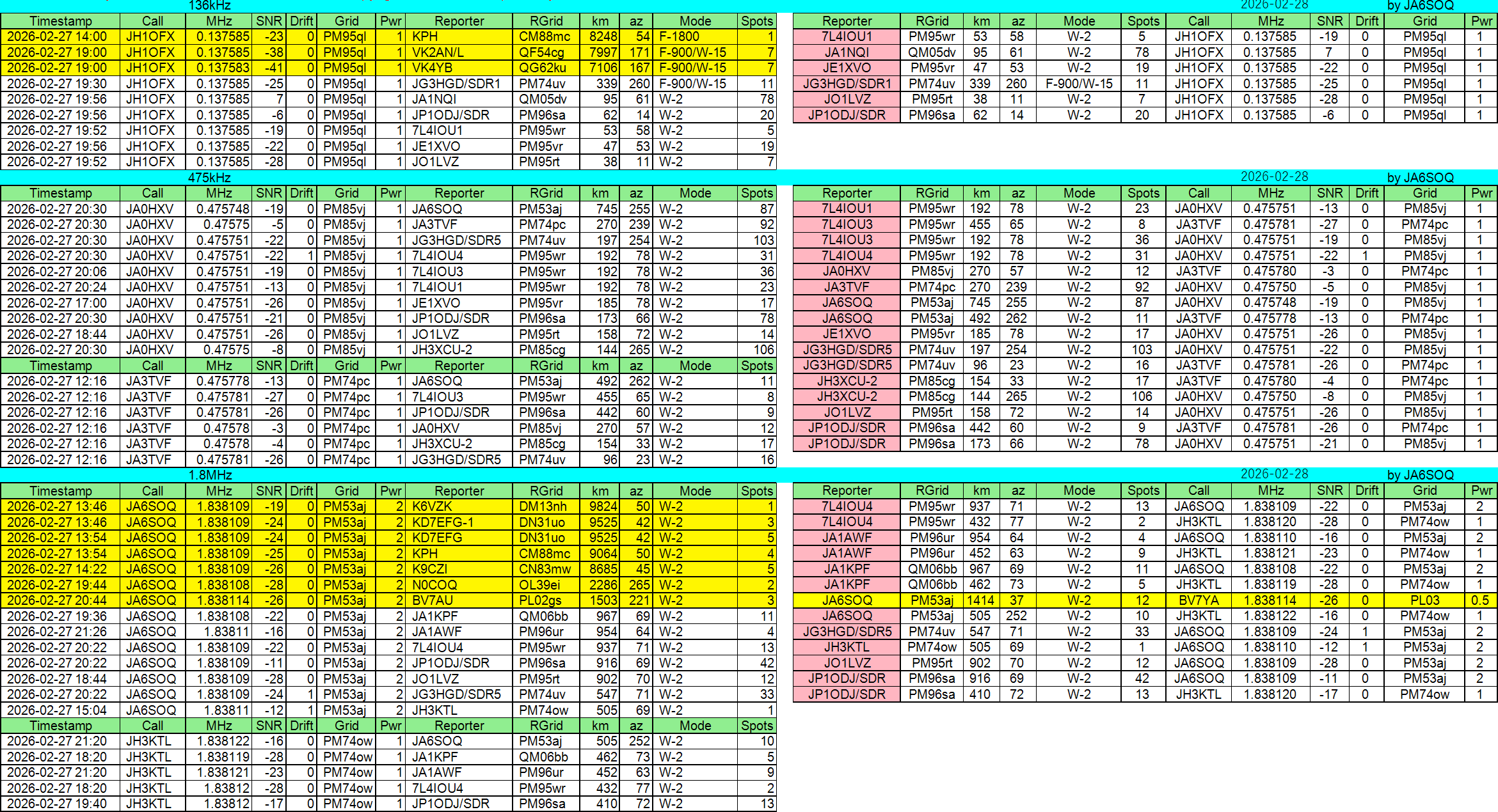 2026年02月27日JST//WSPR他集計です。